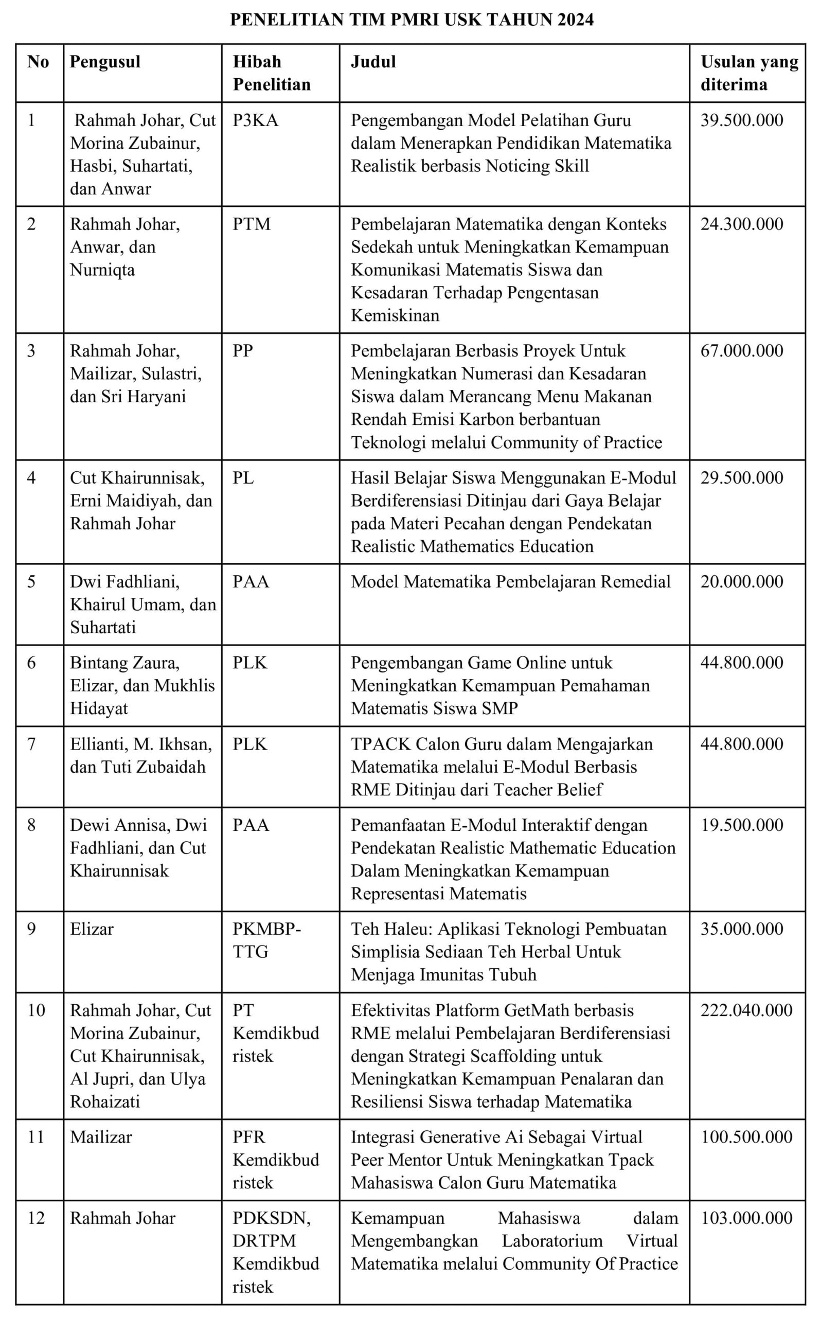 Tim dosen dari Pusat Riset Pendidikan dan Pengembangan Matematika Realistik Indonesia (PRP-PMRI) Universitas Syiah Kuala (USK) bekerja sama dengan Musyawarah Guru Mata Pelajaran (MGMP) Bahasa Indonesia SMA Kota Banda Aceh menyelenggarakan Pengabdian kepada Masyarakat...