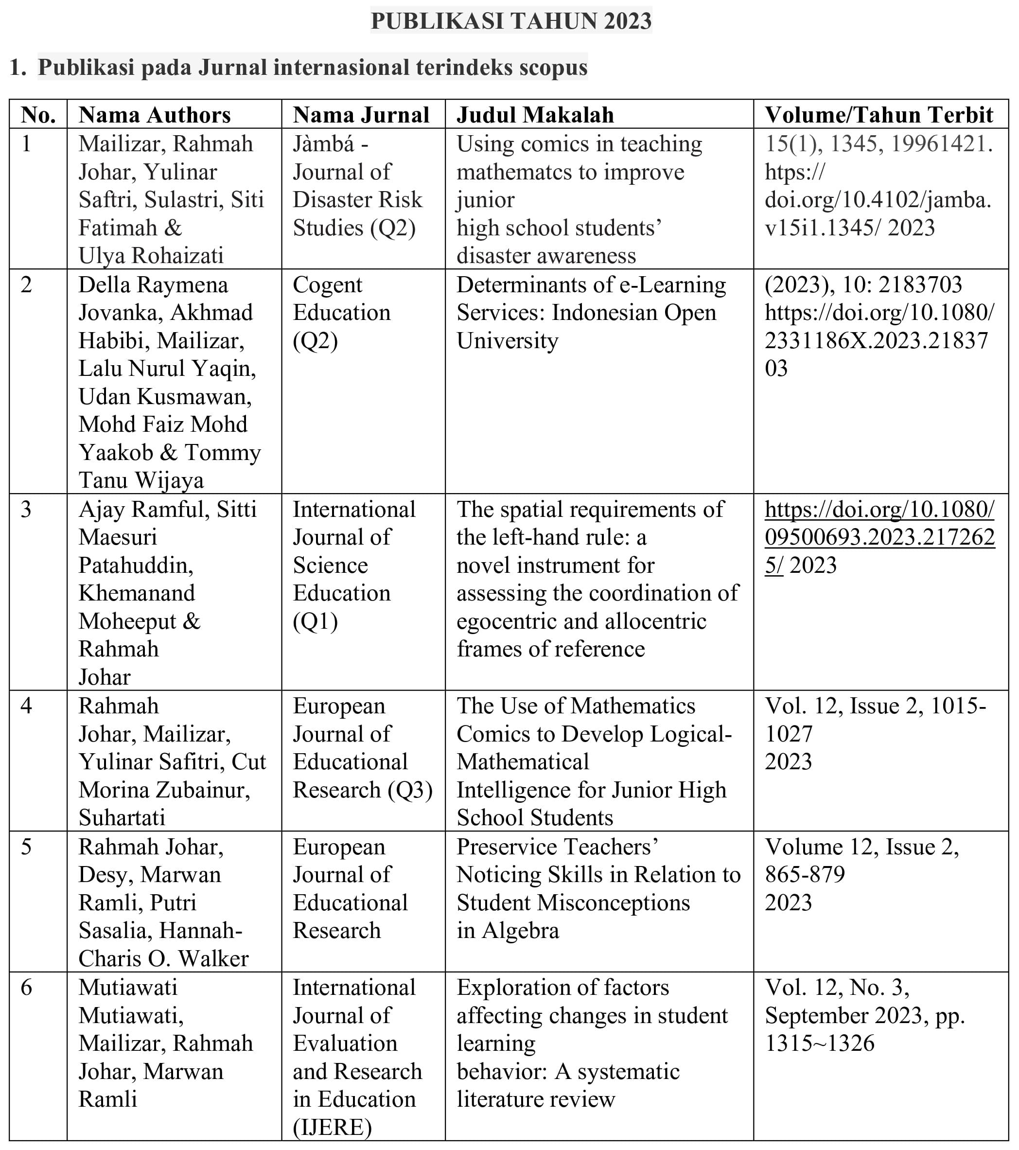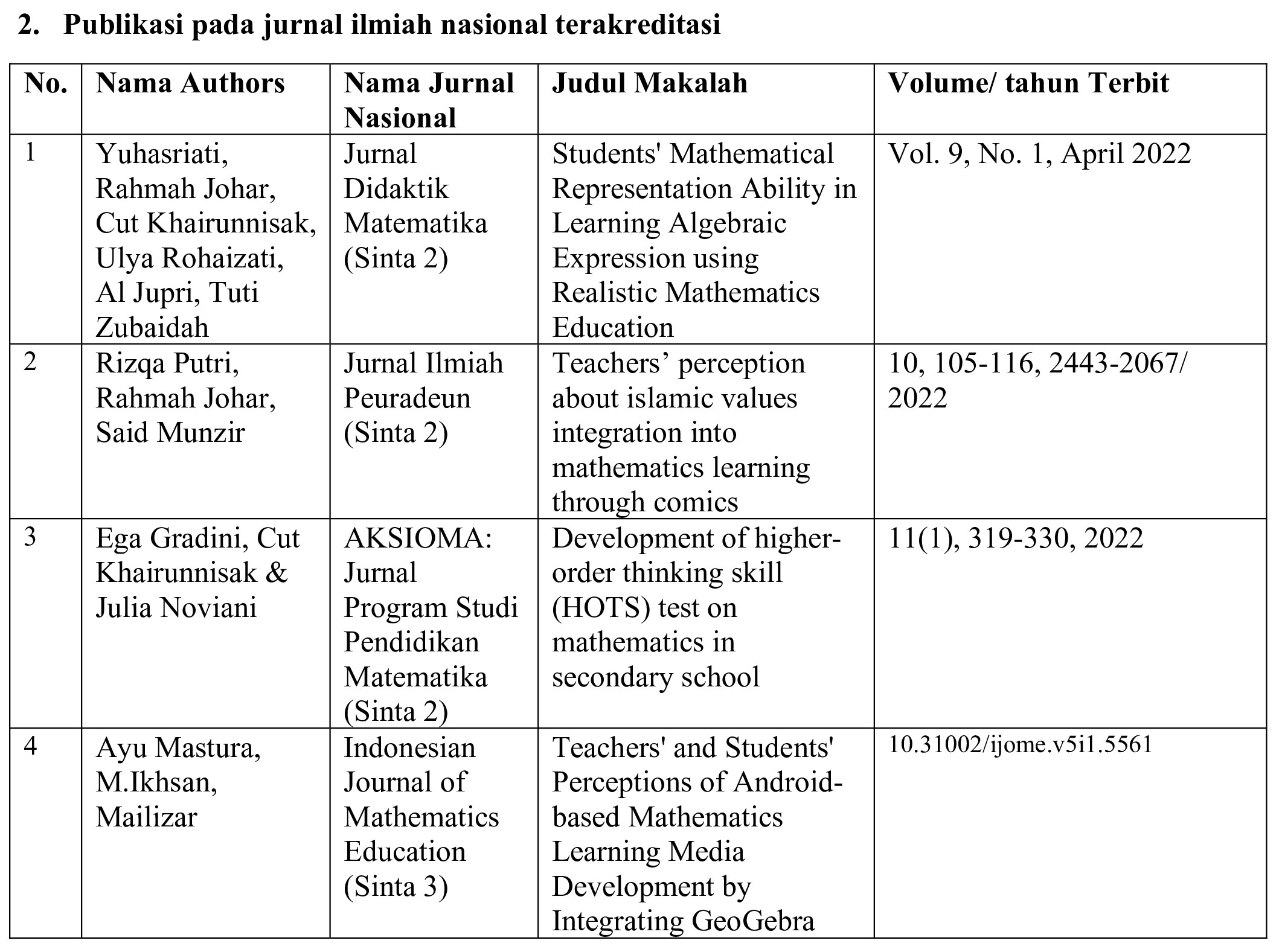 - Tersebarnya informasi kepada masyarakat berkaitan dengan pendidikan matematika
