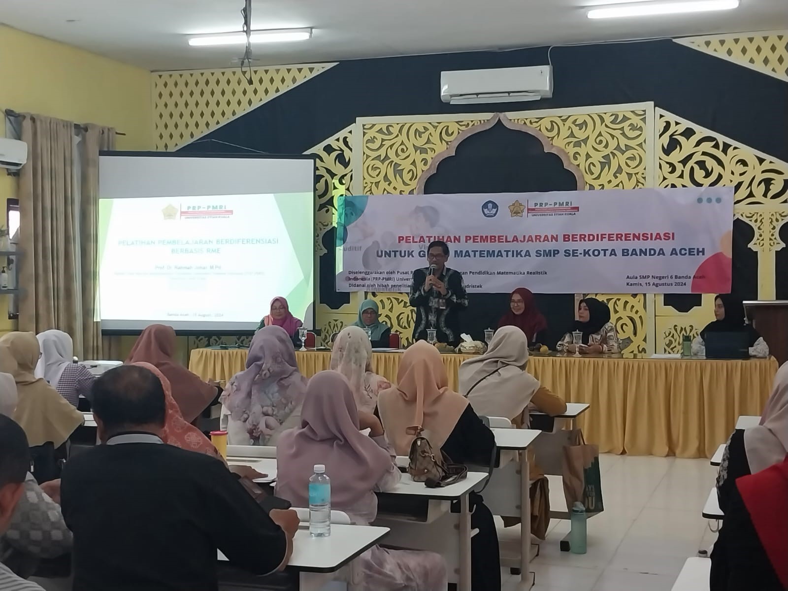 Pusat Riset Pendidikan Matematika Realistik Indonesia (PRP-PMRI) Universitas Syiah Kuala (USK) menyelenggarakan pelatihan pola In-On-In untuk 53 guru SMP se-Kota Banda Aceh, kegiatan ini dilaksanakan tanggal 15 Agustus 2024 sampai 5 September 2024, dan dibuka oleh Sulaiman Bakri, S.Pd., M.Pd, merupakan Kepala Dinas Pendidikan dan Kebudayaan Kota Banda Aceh. Pelatihan dilaksanakan pada Aula SMP Negeri 6 Banda Aceh.
